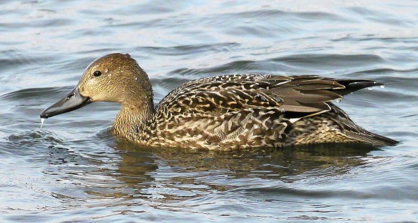 The Northern Pintail is a dabbling duck, slightly smaller and distinctly slenderer than a Mallard. The breeding-plumage male, as seen from winter to early summer, is unmistakable with its chocolate-brown head, much white on its long neck, a finely marked grey body, and long central tail feathers for which it is named. Females, non-breeding males, and juveniles are slightly paler and slimmer than female Mallard. Fine points include a grey bill and lack of strong facial markings.